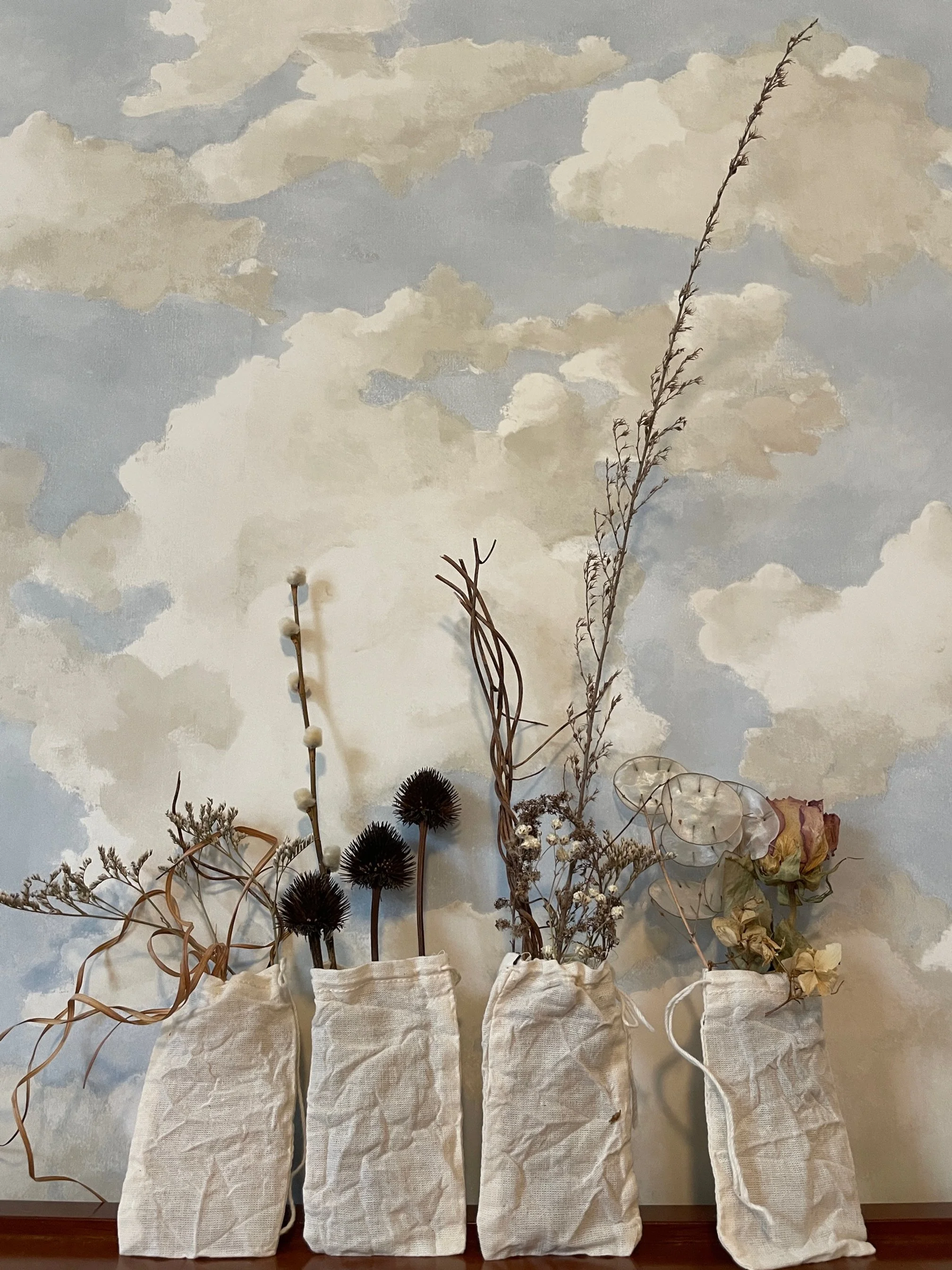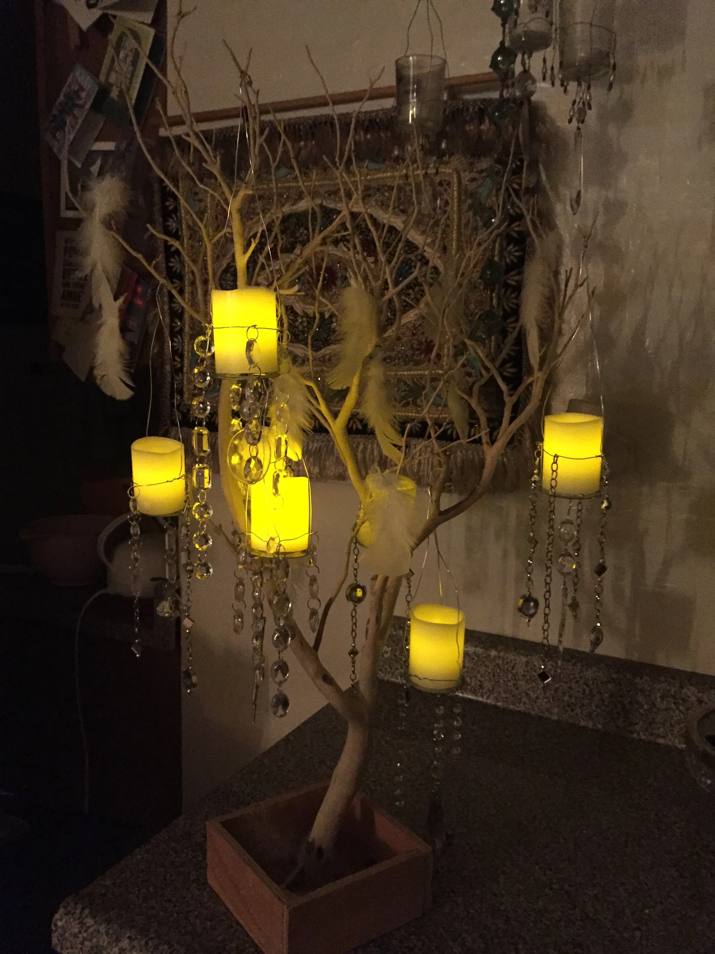 My floral arrangements are non-traditional and I try to use locally foraged plants whenever possible. I love to incorporate things like candles, jewels, lights, feathers, and other treasures that can be reused elsewhere, once the flowers head to the compost pile. Dried arrangements are also useful in a commercial setting since they don’t require any maintenance. Contact me using the Contact button in the upper right - I’m happy to work with any budget.